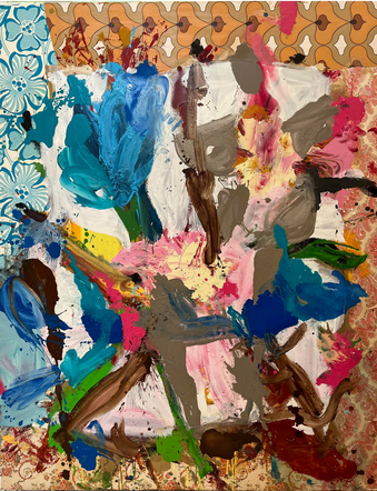 Jorge Galindo (Madrid, 1965) ha estado a la vanguardia de la pintura abstracta gestual en España desde principios de los 90. Series como Patchwork, Fotomontajes Pintados y Pintura Animal evocan un uso inventivo del collage, la variedad de imágenes y una pincelada expresionista implacable. En una de sus series más recientes, El Eco de las Flores, combina la pintura de acción con un tema determinado. Las flores de estas obras son brillantes y están ejecutadas de forma suelta. Están en constante movimiento, casi ilusorias, como si pudieran cambiar o desaparecer en cualquier momento. En estos cuadros, como en muchos otros del pasado, la composición y la pincelada se desintegran, se transforman y luego se reconstruyen. Son dinámicos porque, independientemente de la imaginería o el tema, siguen reconfigurándose y nunca se vuelven familiares.